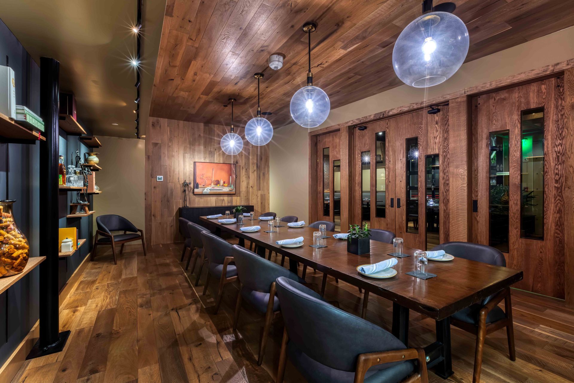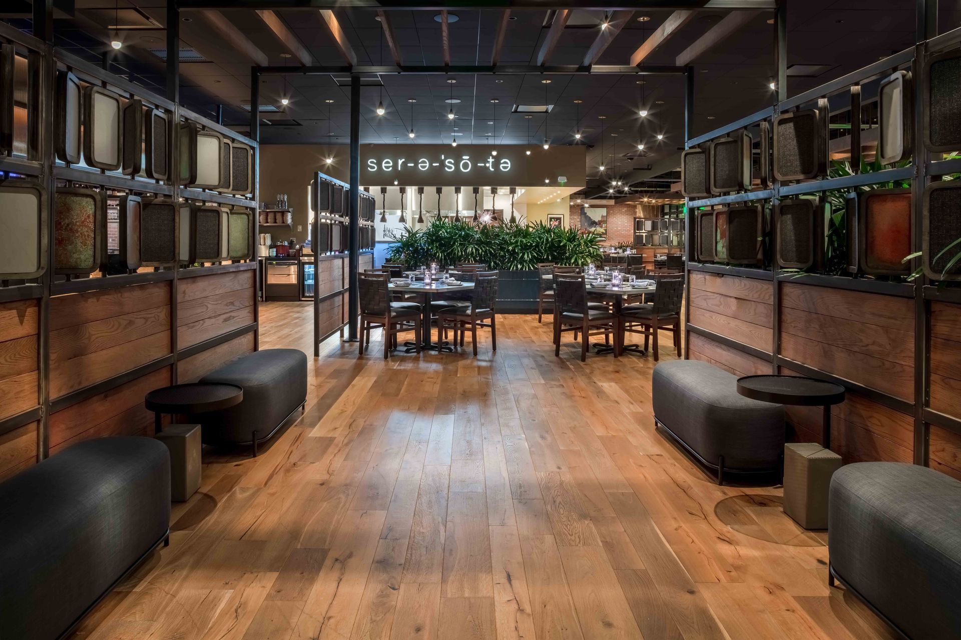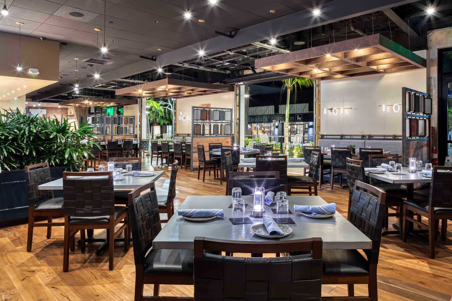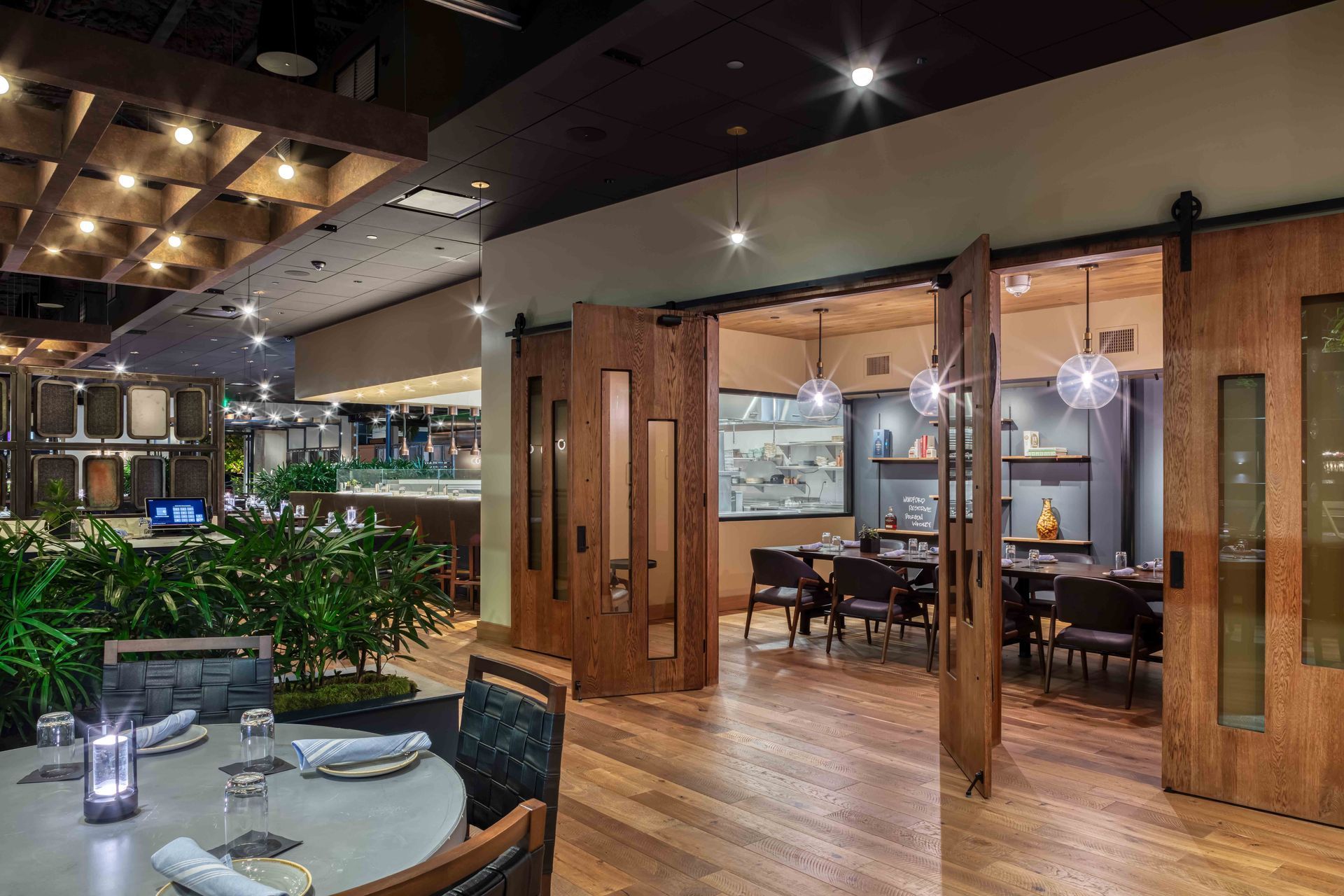 The restaurant provides multiple seating experiences, ranging from a private party niche to a tasting room to an eating bar to booths to a lounge area with full service bar amenities.