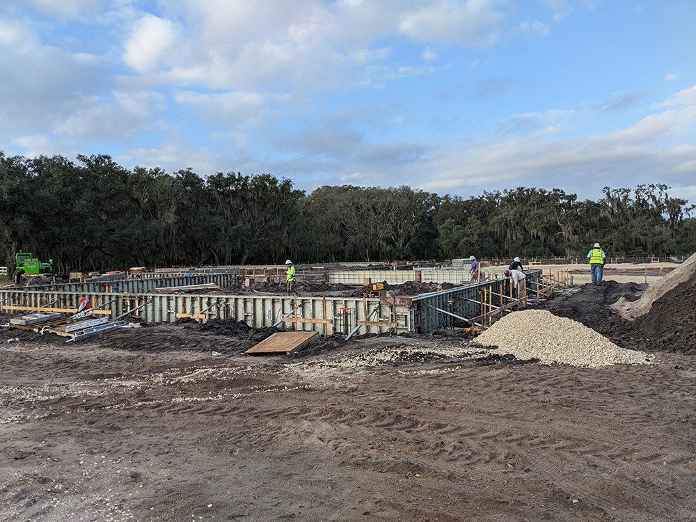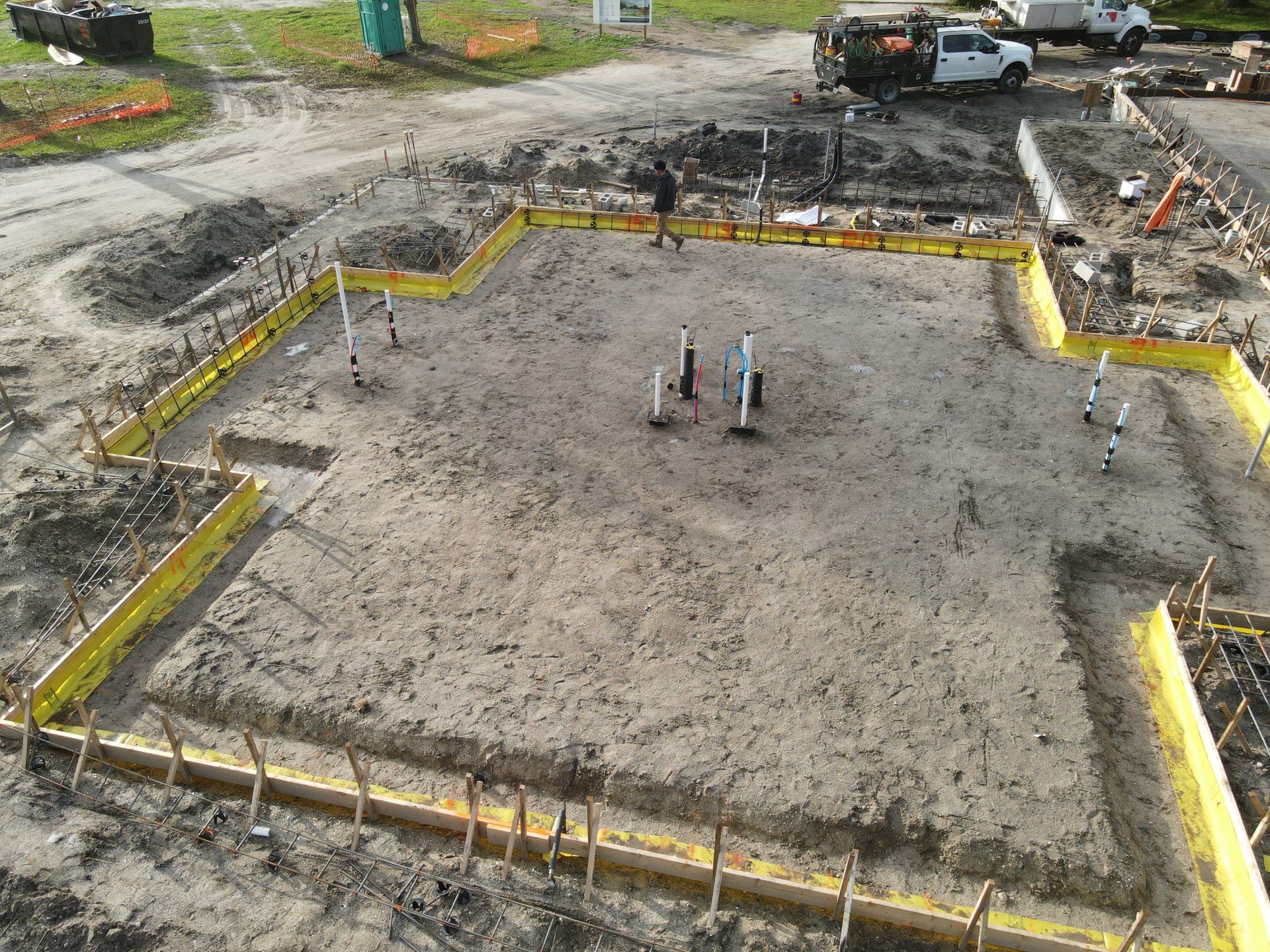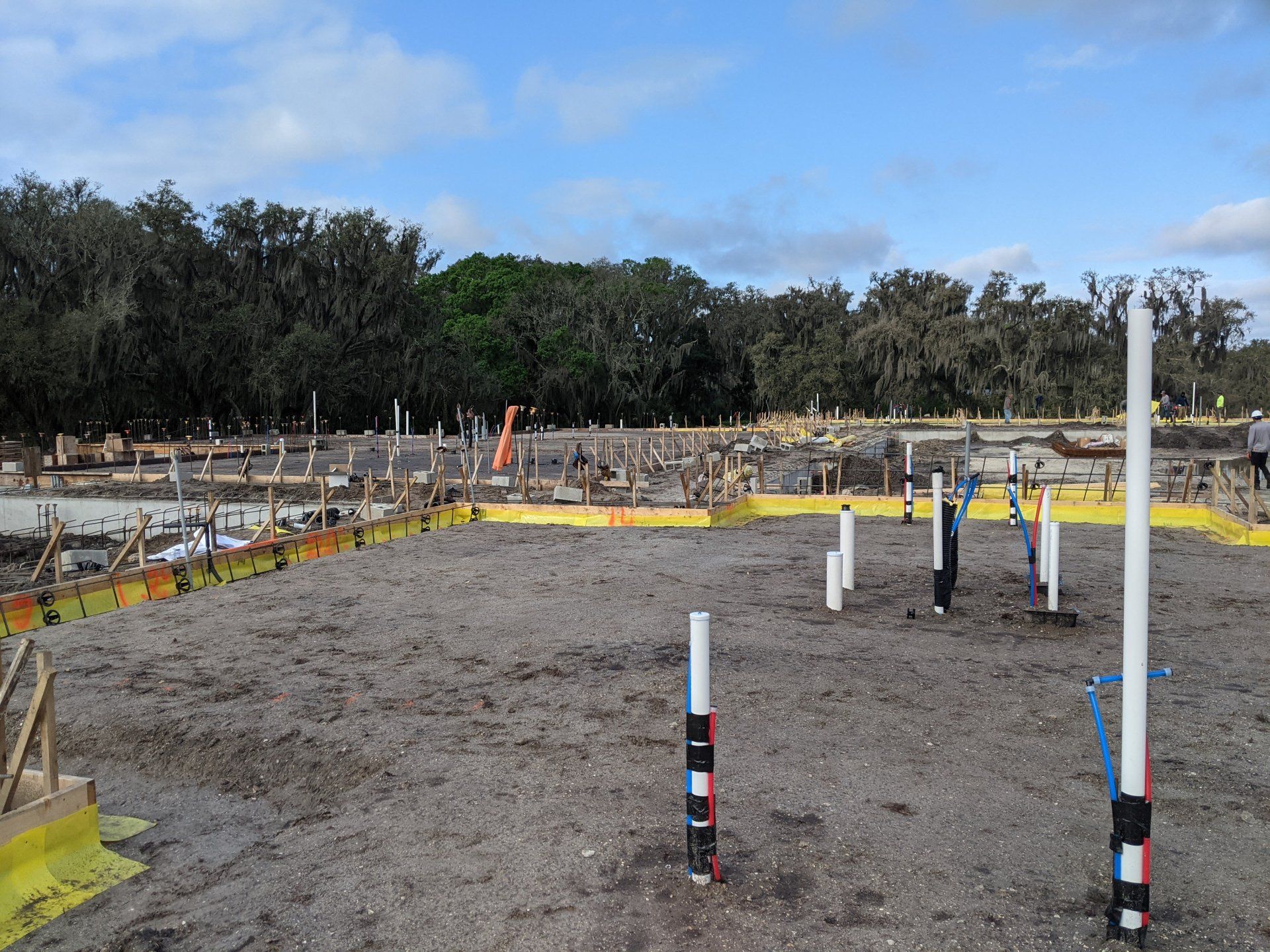 We’re moving along at Resilient Retreat. As you can see in the photos, the building footprints are starting to take shape, utilities are beginning to be run and grading is almost ready for slabs coming soon. The exposed concrete walls are beautiful.