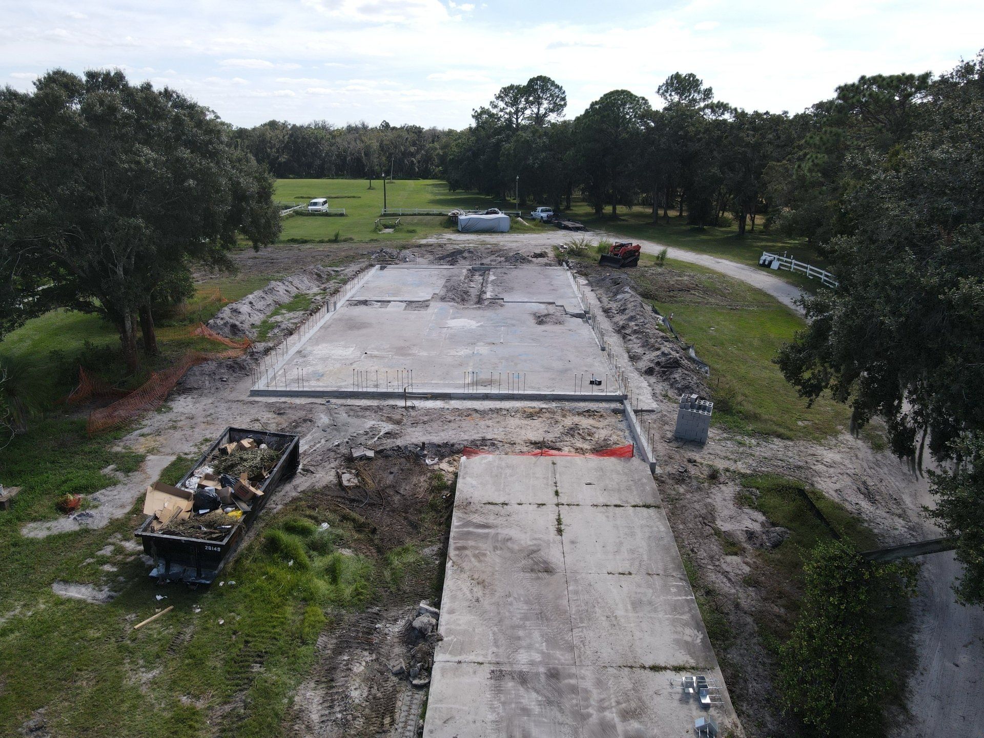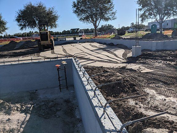 A beautiful day for an update on the construction progress. The decorative concrete walls were poured and dirt is beginning to be graded for the future slab. More to come next week …