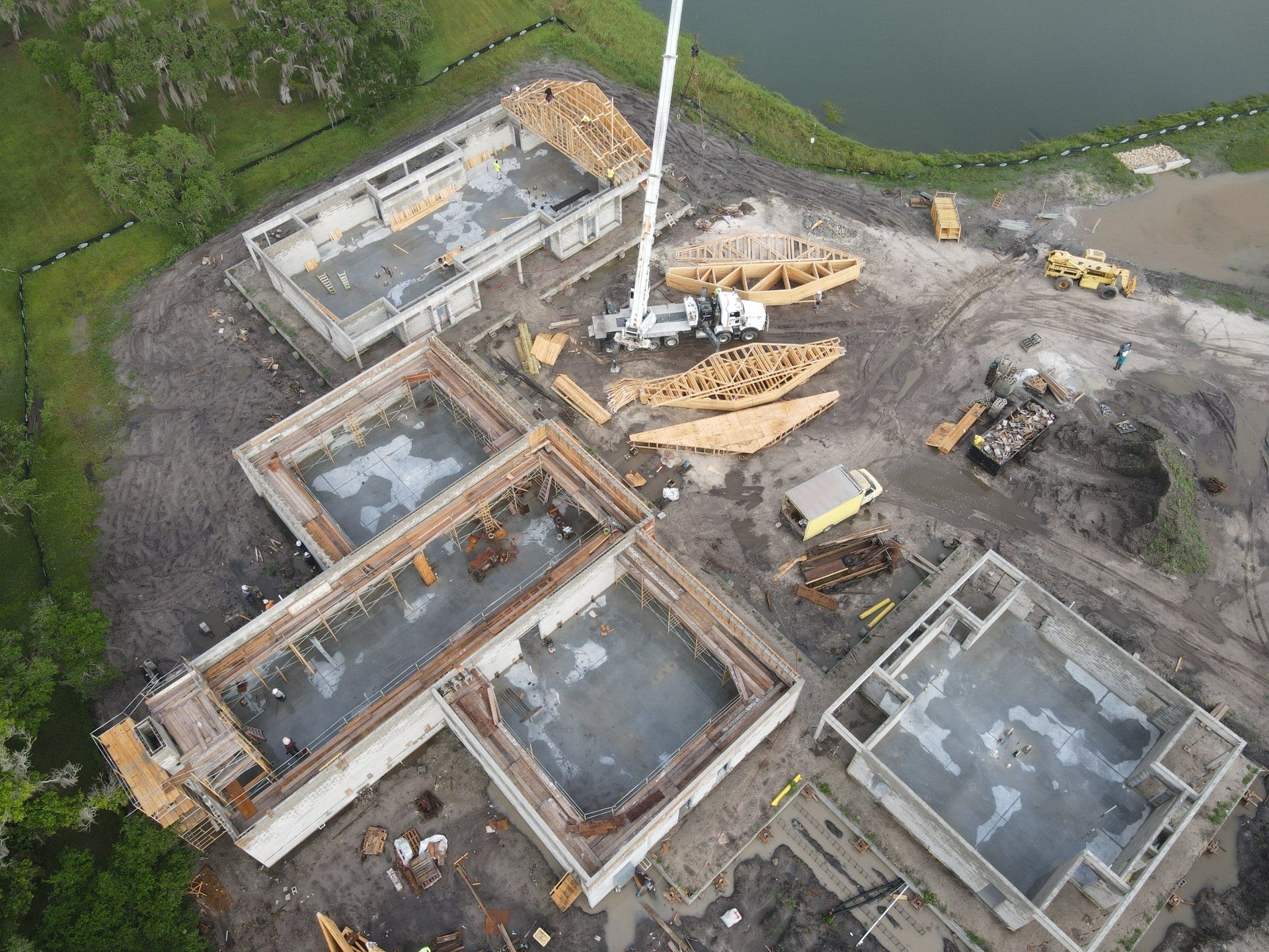 We had the chance to visit the site and practice our drone video skills. In these shots and the accompanying video, you can see the main buildings coming along nicely, as well as the nearby pond and rest of the campus.