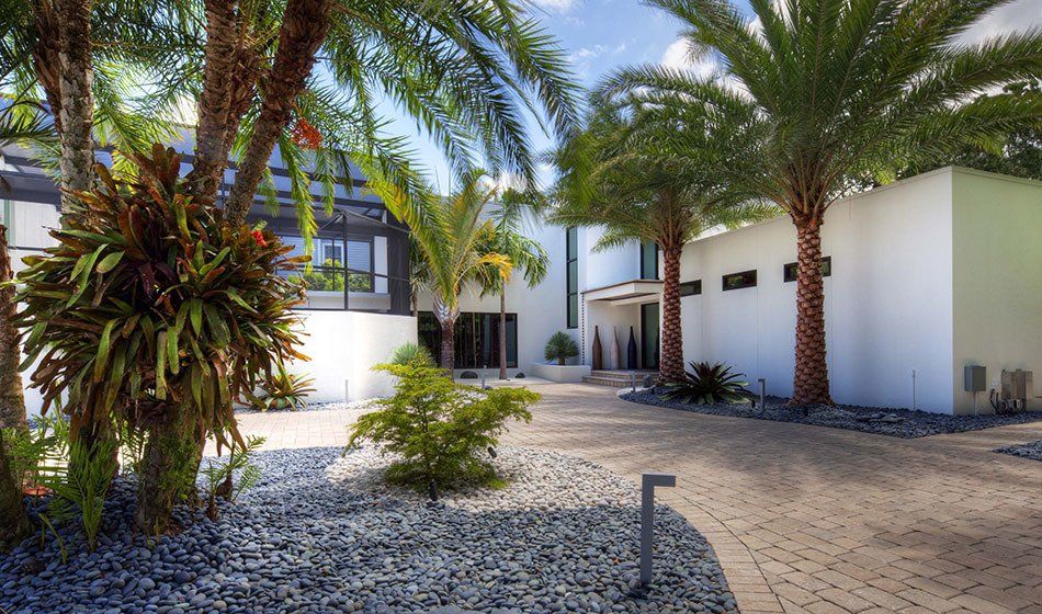 Tucked away west of Tamiami Trail, this subtle but extensive renovation cleaned up a pseudo-modern house and made it into an ultra modern second home for a local, European power couple.
