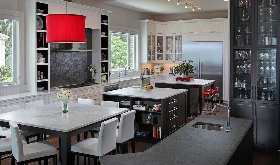 The interior was gutted and every room was redesigned resulting in a loft-like living space with 10’ high arched windows, reminiscent of the original design but reworked to give the space an urban, beautifully lit interior. The kitchen is a masterpiece for any up-and-coming chef blending crisp, sleek white materials with rich, dark woods and accents of bright red. It is functional, exceptionally detailed, and has the “wow” factor these clients were looking to achieve.
