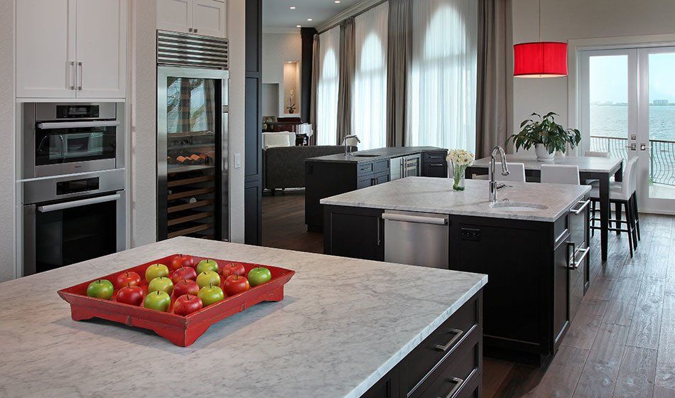 Located in a small gated community north of the city of Sarasota, this private residence benefits from a peninsula-like setting providing breathtaking views of Sarasota Bay to the north and south. Schimberg Group transformed the original Spanish Mediterranean builder home into a contemporary family abode.